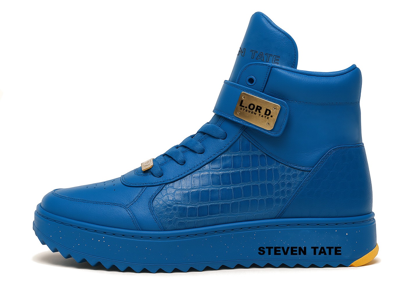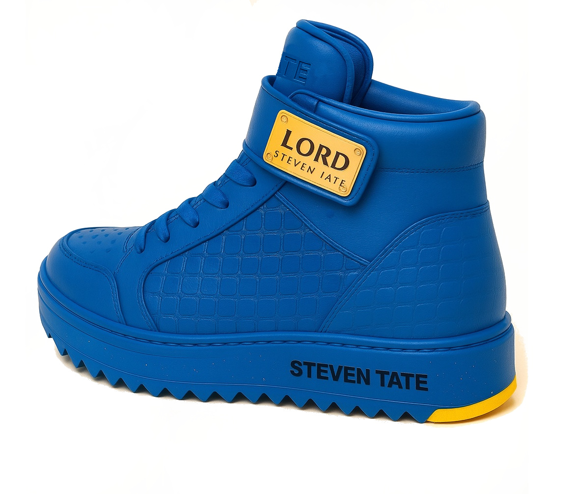 Command attention with the Royal Blue Edition of the L.OR D. by Steven Tate high-top sneaker—a bold, fashion-forward silhouette that fuses urban elegance with elite craftsmanship. Designed to stand out, this sneaker exudes power, presence, and unmistakable luxury.