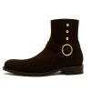 - Gold Studs: Three vertically aligned gold dome rivets grace the upper shaft, offering a military-meets-luxury accent without disrupting the clean suede surface.