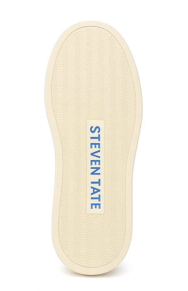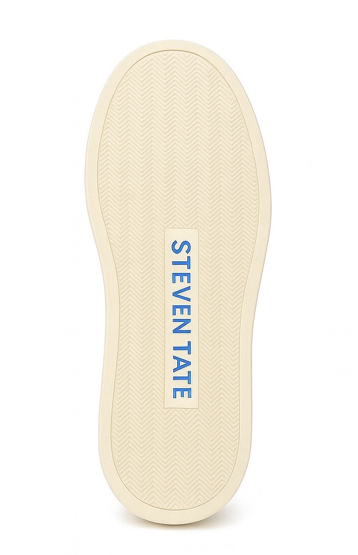 The sneaker is grounded by a robust, cream-colored rubber sole that offers visual contrast and superior comfort. Subtly engraved with the STEVEN TATE logo engraved near the heel, the midsole delivers discreet branding with a luxury edge.