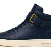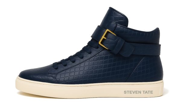 Product Name: STEVEN TATE Navy Croc-Embossed High-Top Sneaker with Gold Buckle