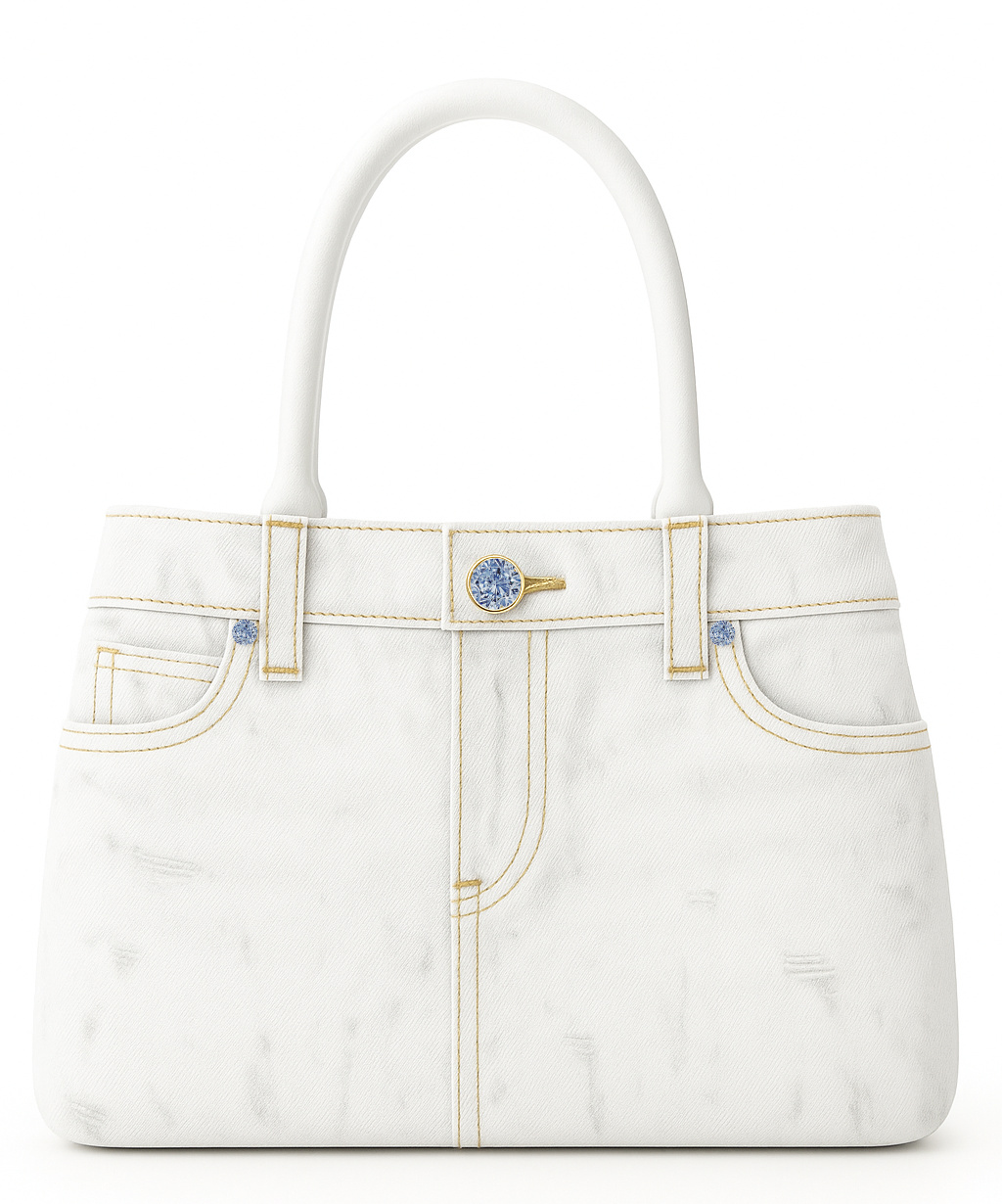 - Classic 5-pocket denim design translated into a structured tote silhouette.