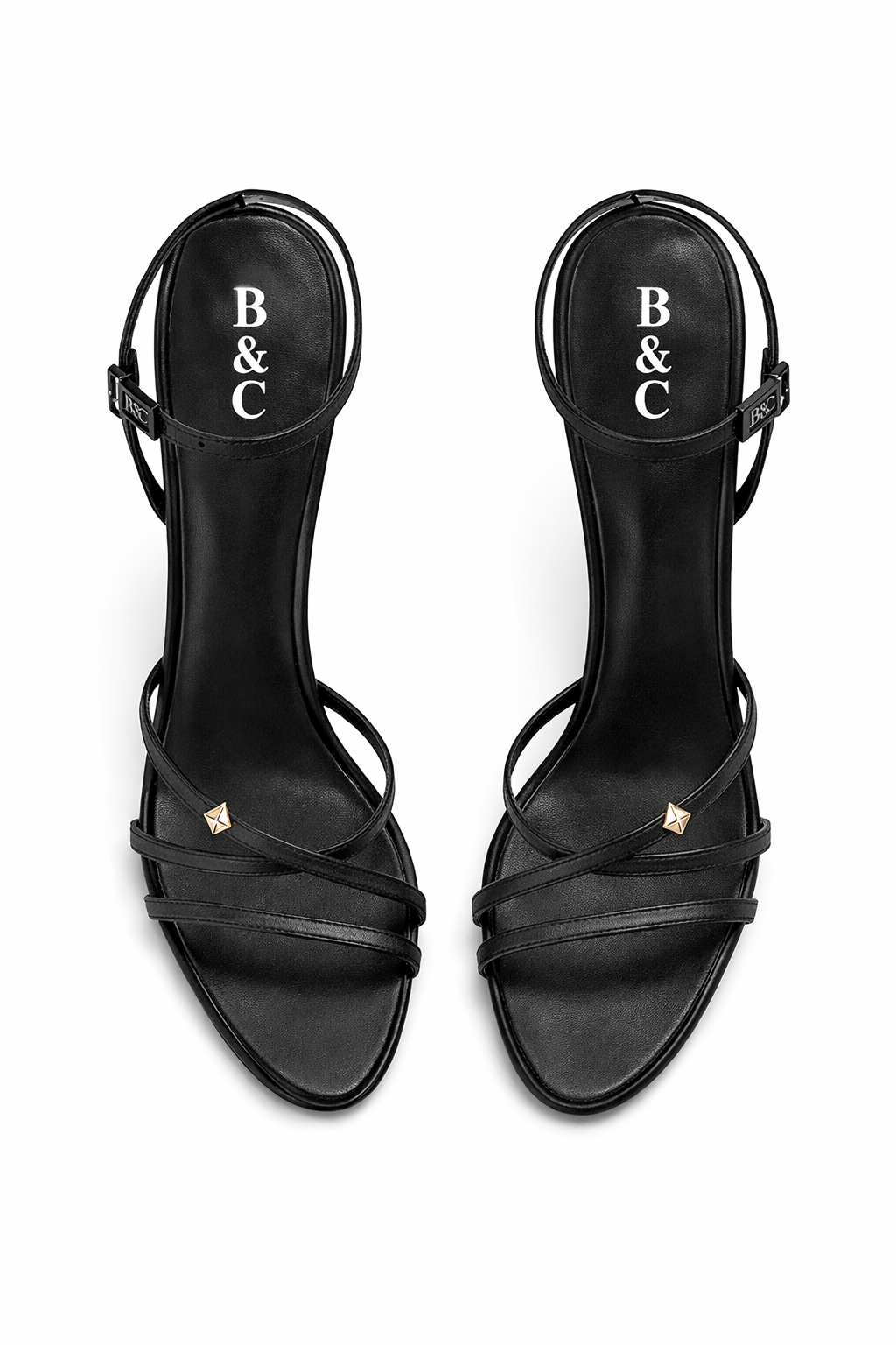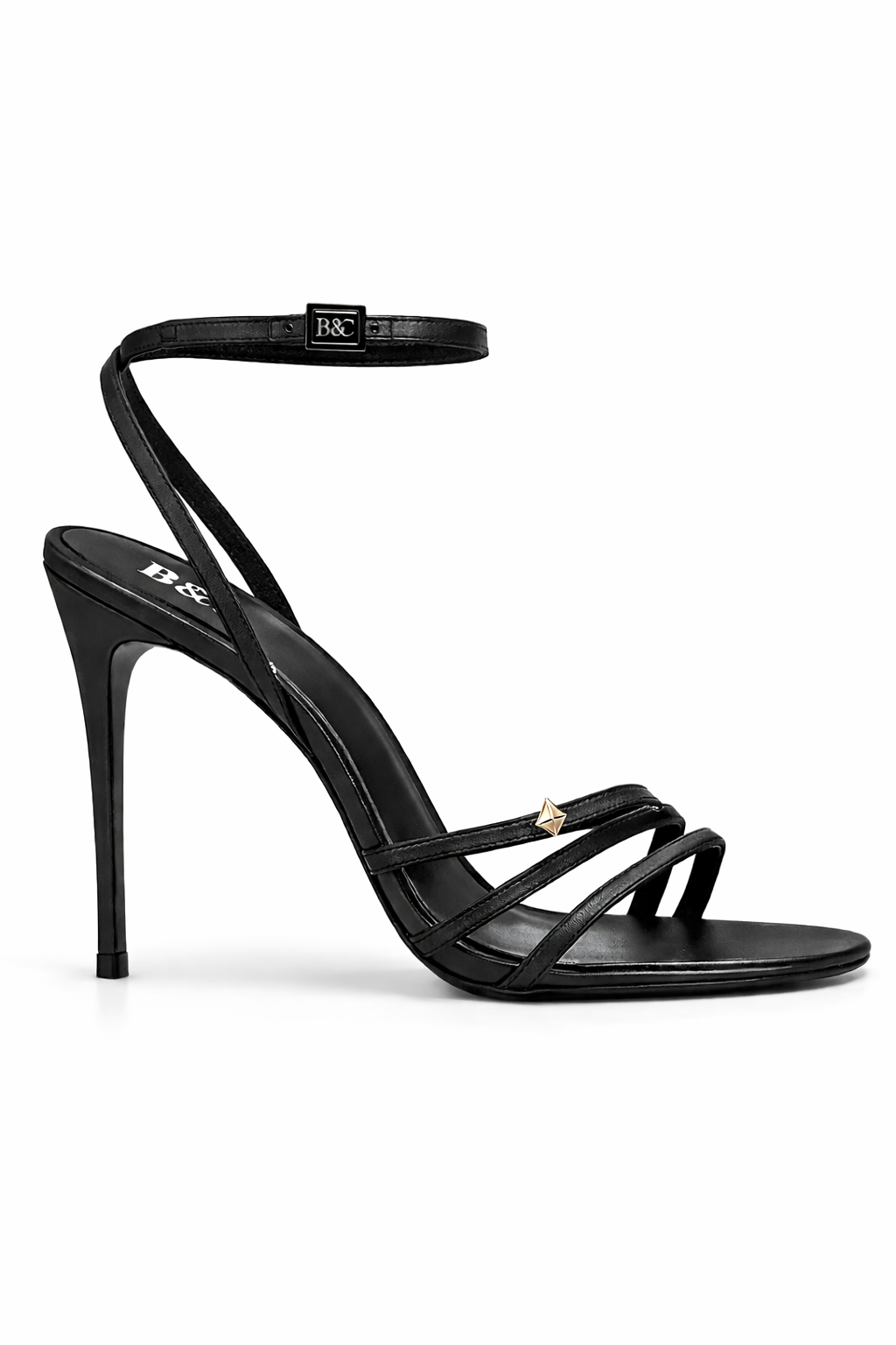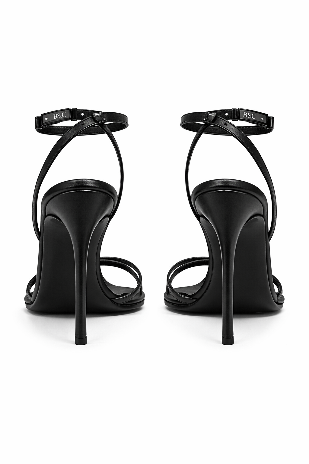 - Ankle Strap: Adjustable ankle wrap featuring a blackened gold / dark metallic B&C engraved buckle for a refined, understated finish