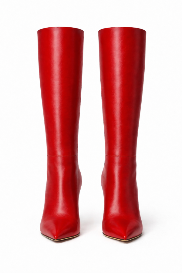 The B&C Signature Stiletto Boot — Ferrari Red Edition is a commanding luxury statement piece. The saturated Ferrari red leather radiates confidence, power, and sensuality, while the sculpted knee-high silhouette and sharp pointed toe create a timeless, leg-lengthening profile.