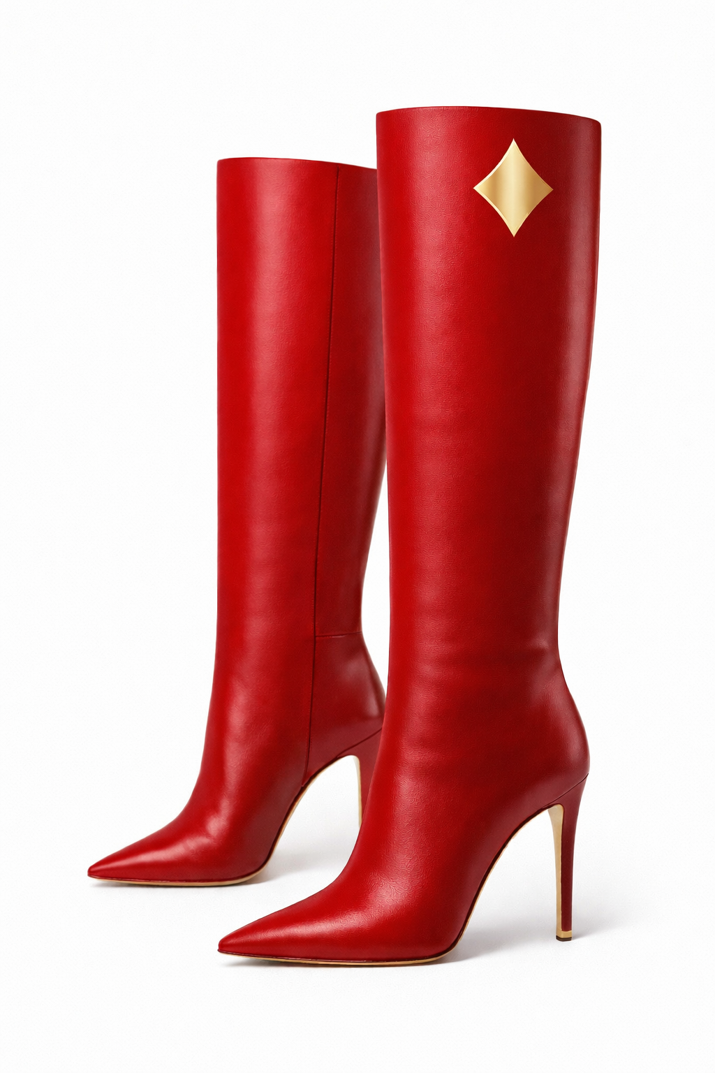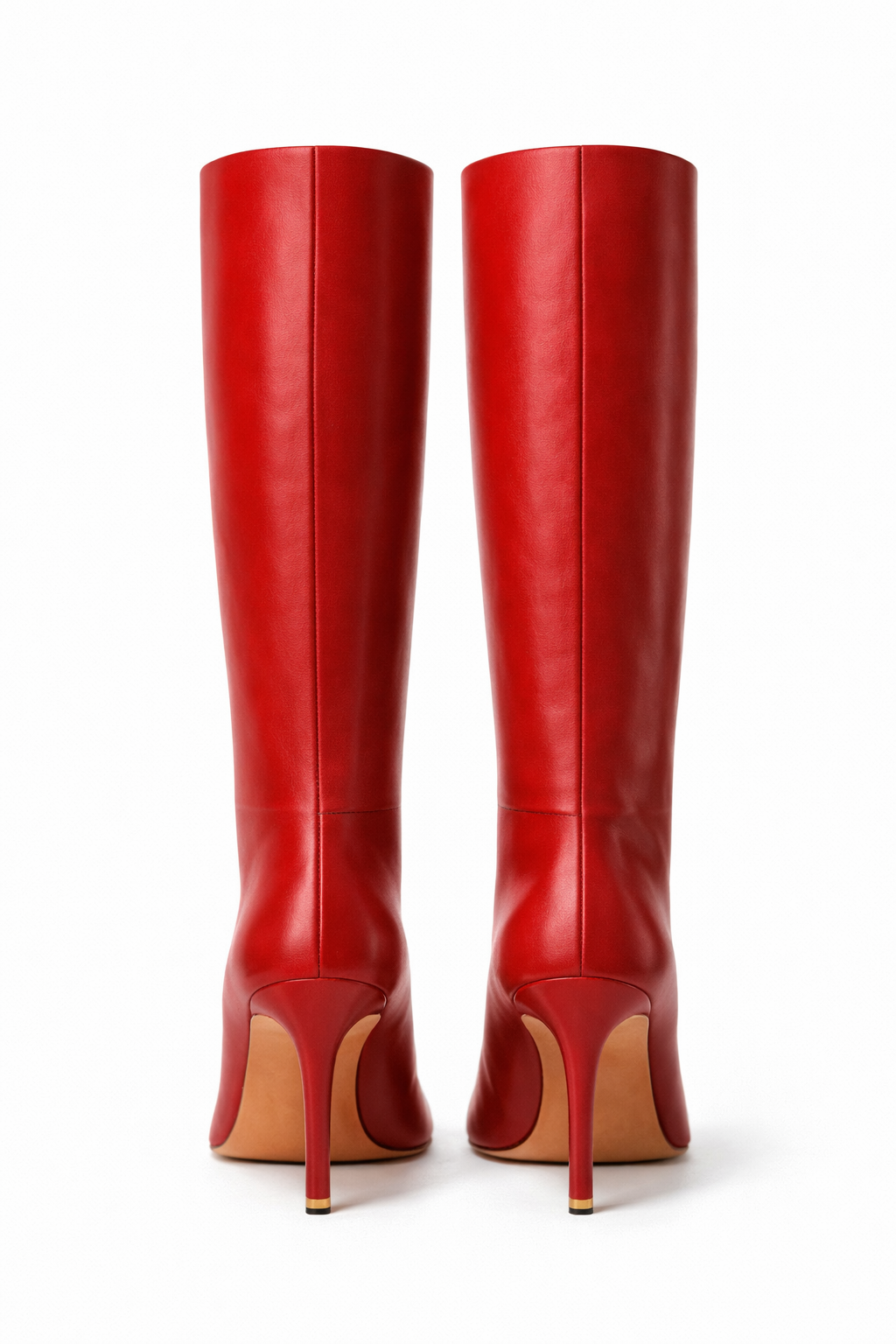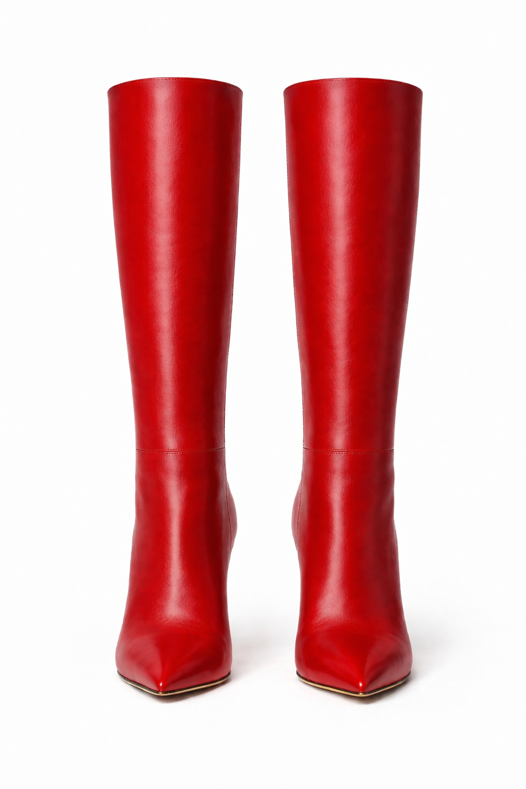 B&C Signature Stiletto — Knee-High Leather Boot (Ferrari Red)