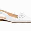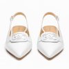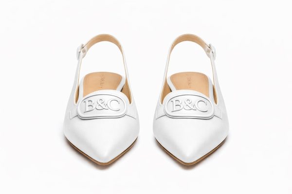 Crafted from pristine, full-grain white leather, the upper is smooth, luminous, and architectural. The sharply tapered pointed toe sculpts the line of the foot with refined femininity, while the slim slingback strap frames the heel with delicate structure. The silhouette is minimal, but never simple.