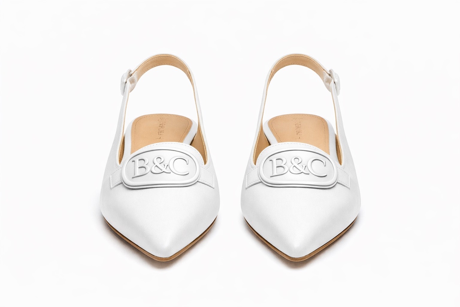 Centered on the vamp is the custom-molded B&C emblem, rendered in tonal white hardware for a monochromatic, couture-level finish. It is a subtle statement — visible only to those who know what they are looking at.