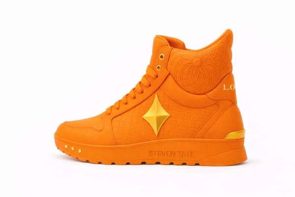 - Brand Signature: “STEVEN TATE” embossed on the midsole in tonal orange for sleek, subtle branding.