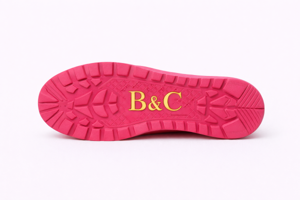 - Outsole: Rubber outsole in tonal fuchsia with a custom tread pattern designed for both traction and visual harmony.