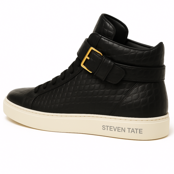 Command attention with this sleek and powerful high-top sneaker from STEVEN TATE, designed for the modern man who values luxury with a bold edge. Crafted from premium black croc-embossed Italian leather, this silhouette merges street style with timeless sophistication.