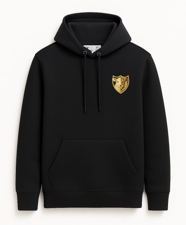 HOODIE DESCRIPTION — BLACK WITH LION & LAMB CREST