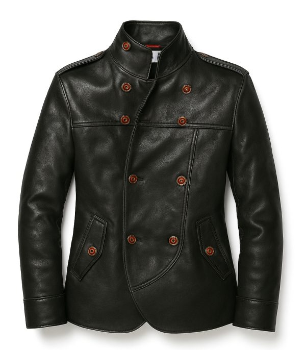 Luxury Double-Breasted Leather Officer Jacket — Detailed Description