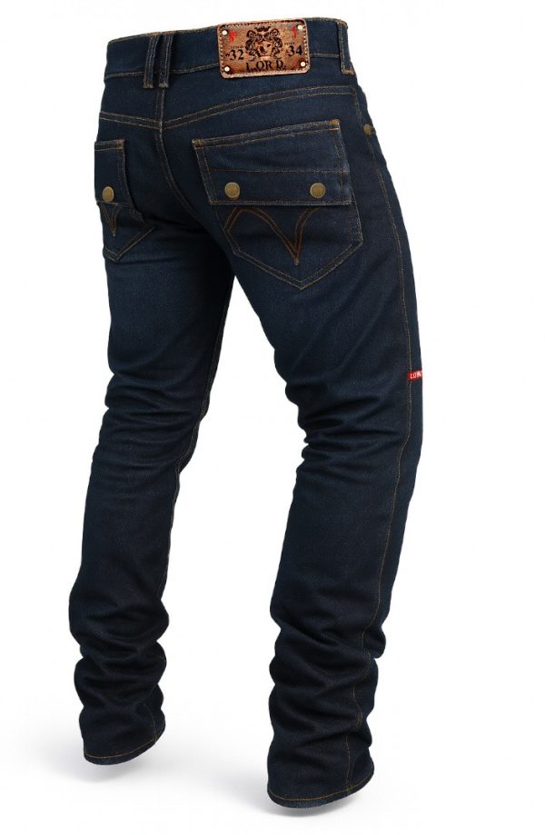 - Signature LORD Back Pocket FlapsCustom flap-style pockets reinforced with double-stitched contour lines, finished with matte gold metal snaps.