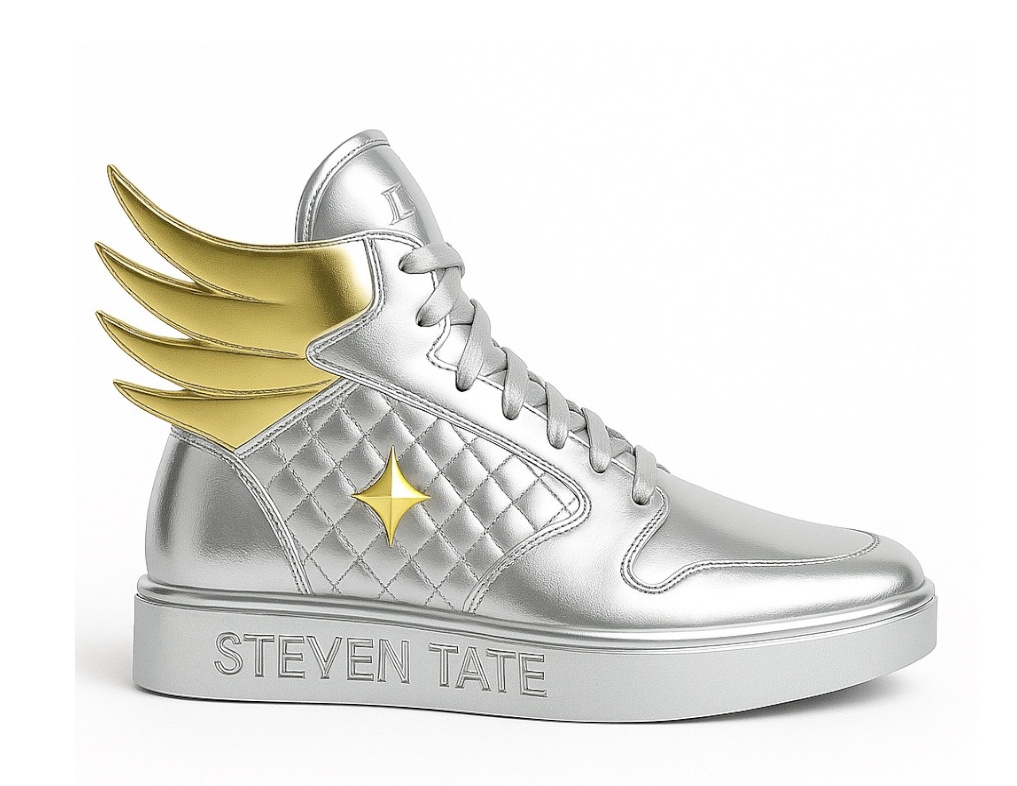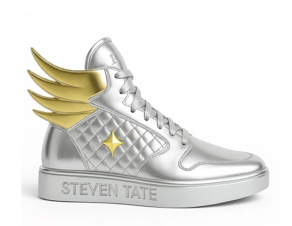 “Elysium Platinum – Winged High-Top Luxury Sneaker by Steven Tate”