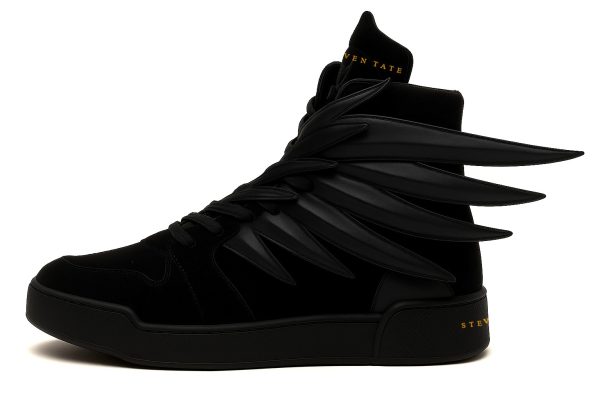 Here is the detailed description of your black-on-black high-top luxury sneaker with wings from the STEVEN TATE collection: