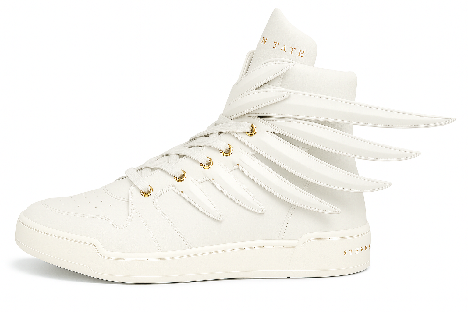 This sneaker is a symbol of elevation, purity, and status. The winged design evokes freedom and power while remaining luxurious and modern. Perfect for high-end streetwear collections, music videos, luxury fashion drops, and celebrity endorsements.