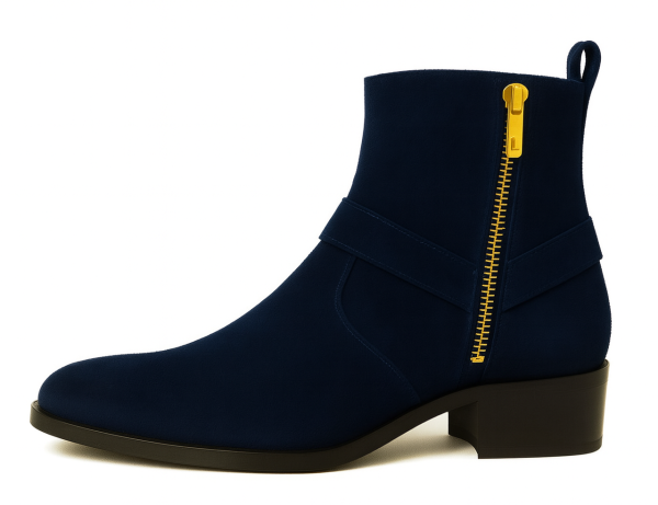 • Pair with camel coats, gray suits, or off-white denim to create a contrast that makes the navy suede pop.