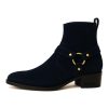 Understated yet striking, this boot is a masterclass in refined contrast. The velvety navy suede offers deep richness, while the sleek harness and gold-tone accents add just the right amount of edge. It’s a sophisticated twist on the western-inspired silhouette, crafted for the modern luxury wardrobe.