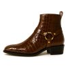 Luxury Crocodile-Embossed Brown Leather Harness Boot
