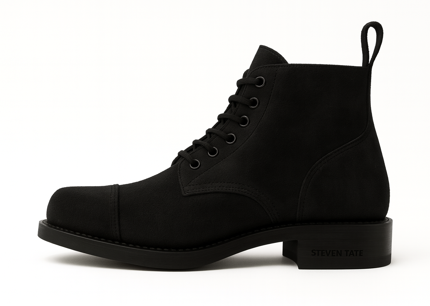 Refined, rugged, and purposefully bold—the STEVEN TATE Signature Square-Toe Boot in Black Worn Leather is a timeless statement of character and craftsmanship. Made from the finest Italian full-grain leather with a distressed matte finish, this boot is designed for men who appreciate understated power and enduring design.