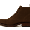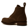 The squared cap toe and contoured vamp seam offer a bold, structured profile, while the 7-eyelet lacing system—featuring matte dark bronze hardware and round waxed laces—enhances both function and form. The leather displays a beautifully weathered texture, giving it a broken-in vintage appearance without sacrificing sophistication.