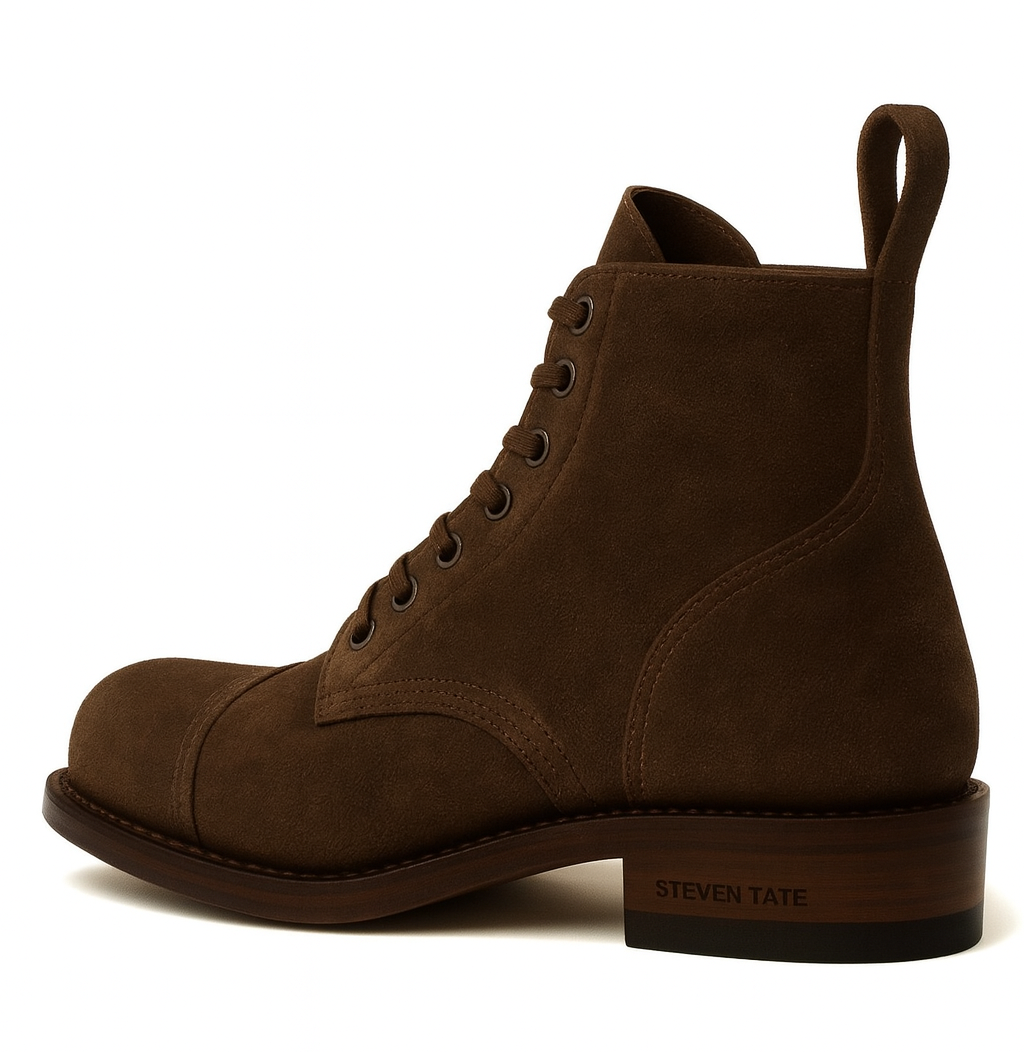 The STEVEN TATE Square-Toe Heritage Boot in worn brown is the embodiment of rugged luxury—designed for those who appreciate old-world craftsmanship blended with refined edge. Handcrafted from distressed Italian full-grain leather, the boot showcases a rich brown patina with natural tonal variations that deepen with wear.