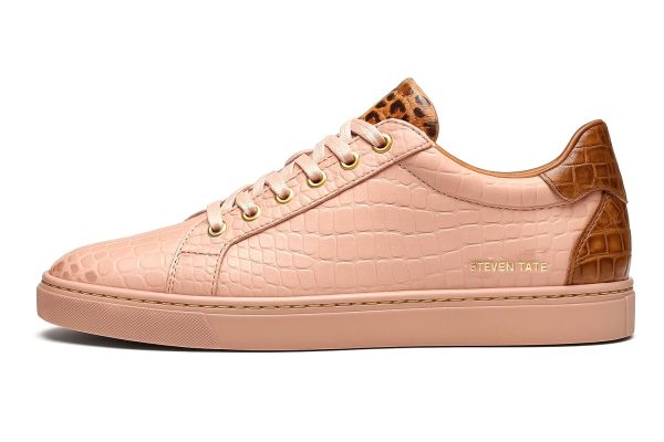 This bold reinterpretation of the classic low-top sneaker blends feminine strength with exotic sophistication. The Steven Tate Signature Croc Low-Top in Blush Rose & Cocoa features an embossed crocodile-textured Italian leather upper in a warm blush tone—modern, sleek, and unapologetically elegant.